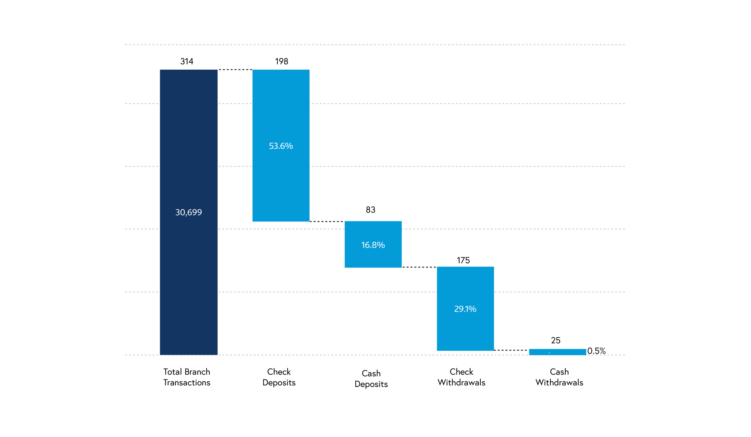 Branch dependency is higher when cash is germane to a client’s business model, and volume are low.