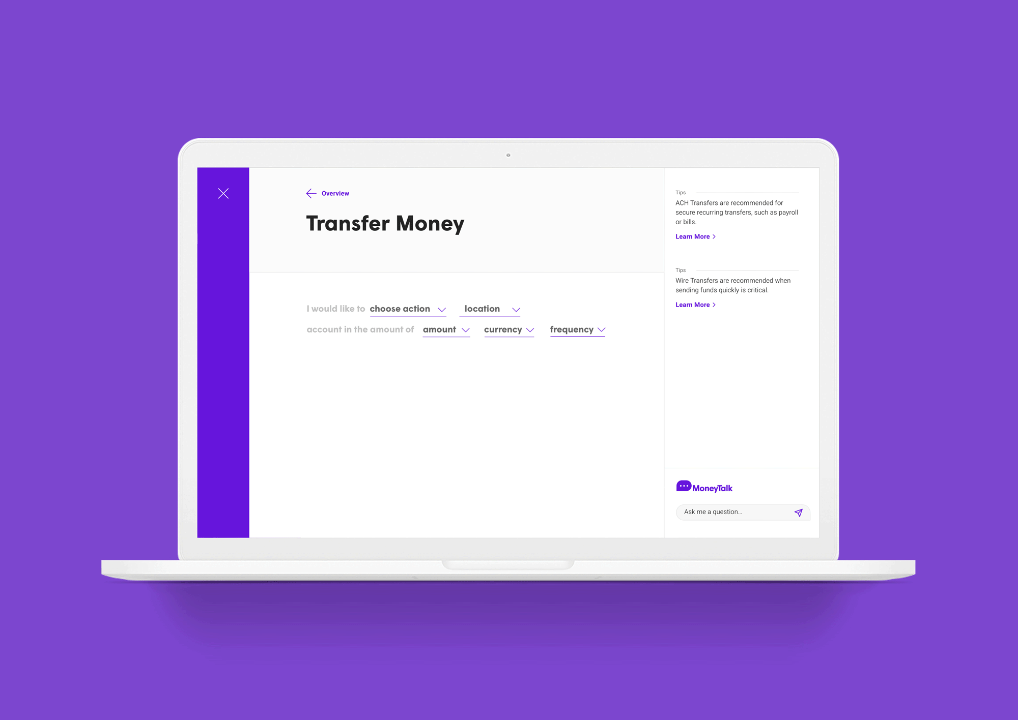 The framework was applied to four primary flows: processing payments through a guided wizard, managing and approving multiple wire transfers, reviewing account activity across large datasets, and configuring user roles and company settings. A responsive component library ensures a consistent experience across devices, with full functionality available on mobile. MoneyTalk remains accessible while scrolling, and the platform supports flexible branding, allowing customization of colors and logos to align with each client’s identity.